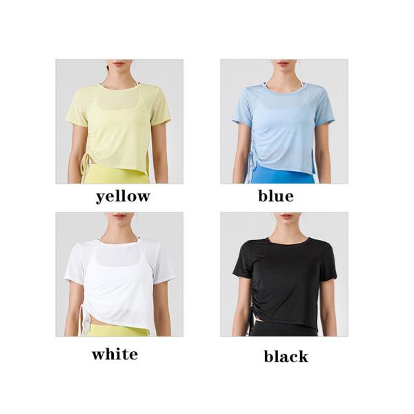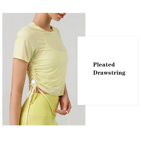 Round Neck Pleated Ladies Yoga Tops Breathable Women'S T Shirt Images |